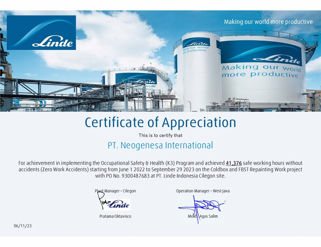 PT NeoGenesa International committed to quality, safety, and customer satisfaction. We pride ourselves on offering reliable, durable, and compliant solutions that not only meet industry standards but also exceed our clients' expectations. Our skilled professionals bring decades of combined experience to every project, ensuring timely delivery, seamless execution, and ongoing support.